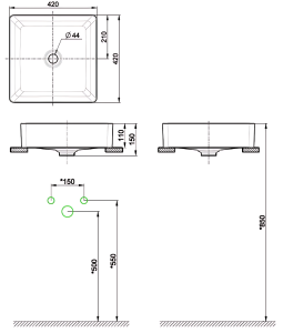 American Standard CCASF411-1000410M0 Acacia Supasleek Square Vessel Wash Basin 420mm