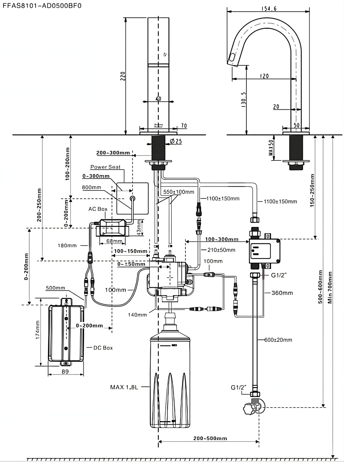 American Standard FFAS8506-A00500BC0 Line Sensor Basin Faucet (AC)