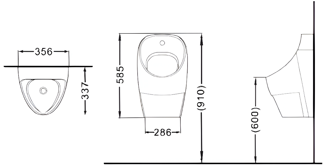 WASSER AS6747/ AS6747S Wall Hung Top/Back Inlet Urinal