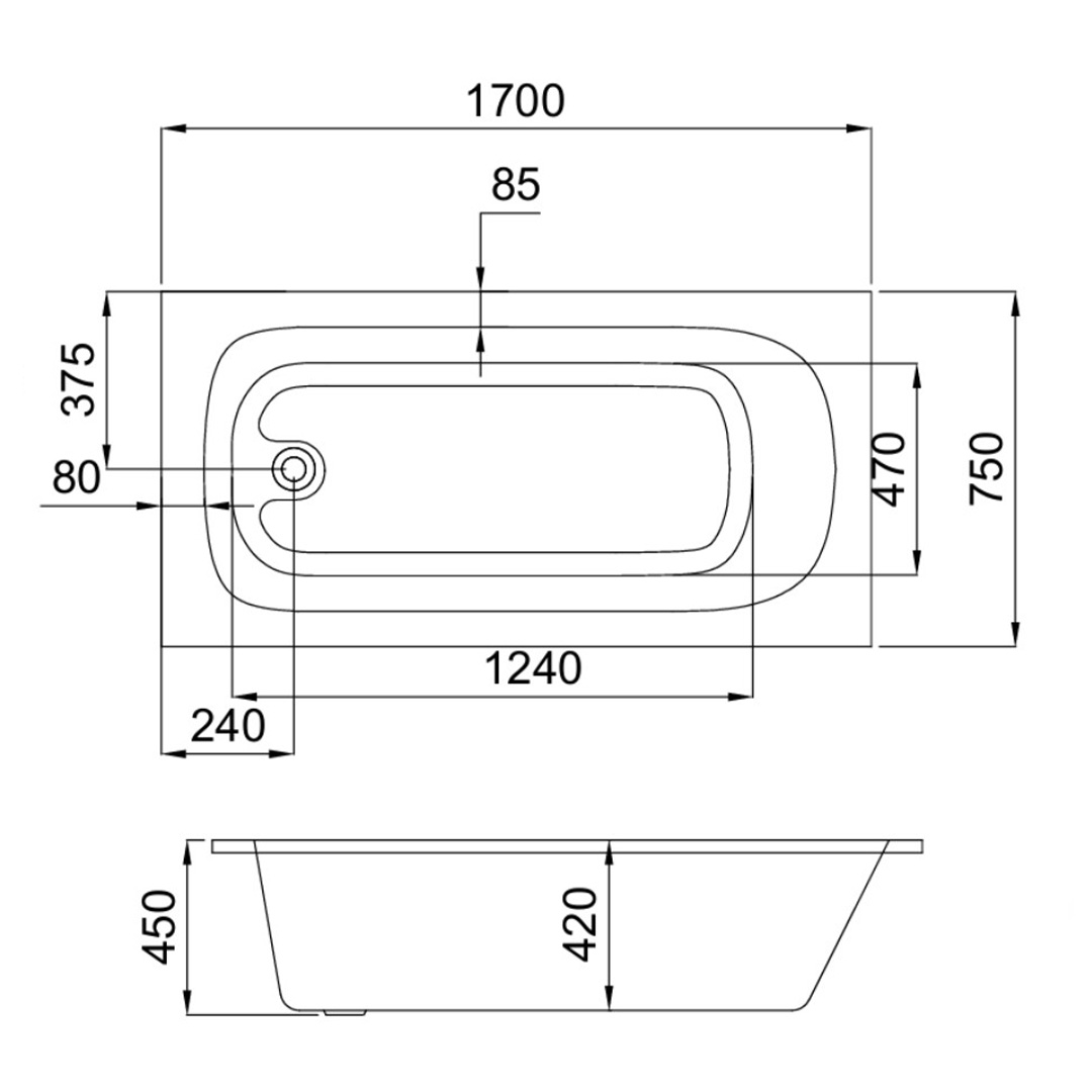 Wasser AT-3610 White Acrylic Built-In Bathtub c/w Waste