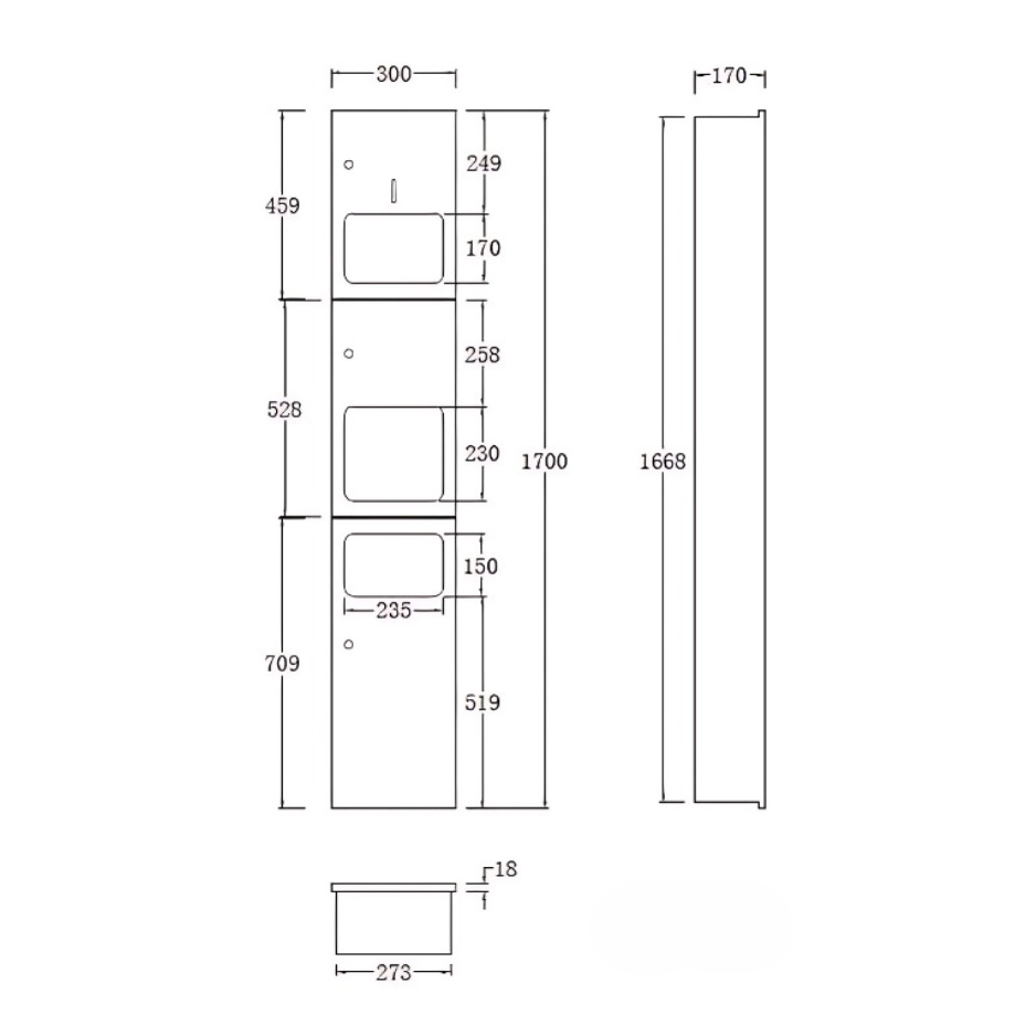 Dimension: W300 x L170 x H1700 mm